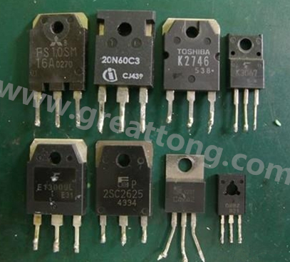 照片中上方為電源內常見的N MOSFET(N型金氧半導體場效晶體管),下方則是NPN BJT(NPN型雙接面晶體管)。