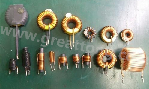 圖片中電感形狀有環形及圓柱型,隨著感值及電流承受力而有不同的圈數以及漆包線粗細。